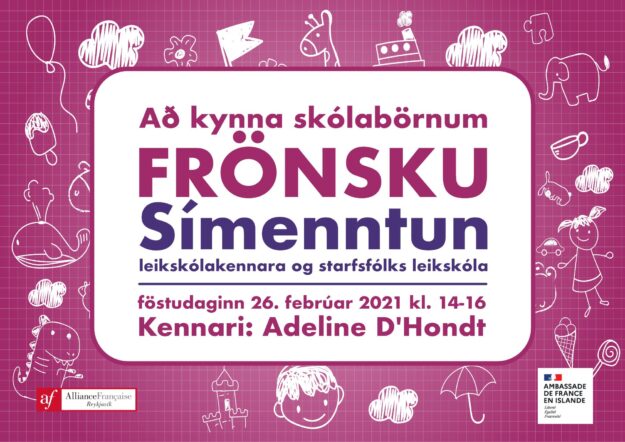 L’Alliance Française de Reykjavík et l’ambassade de France en Islande proposent un atelier de formation professionnelle en ligne au français précoce pour les instituteurs et institutrices islandais des niveaux maternelles ainsi que le personnel des écoles maternelles. Cette formation s’adresse aux professeurs d’écoles maternelles et personnel d’écoles qui veulent initier les enfants à la langue…