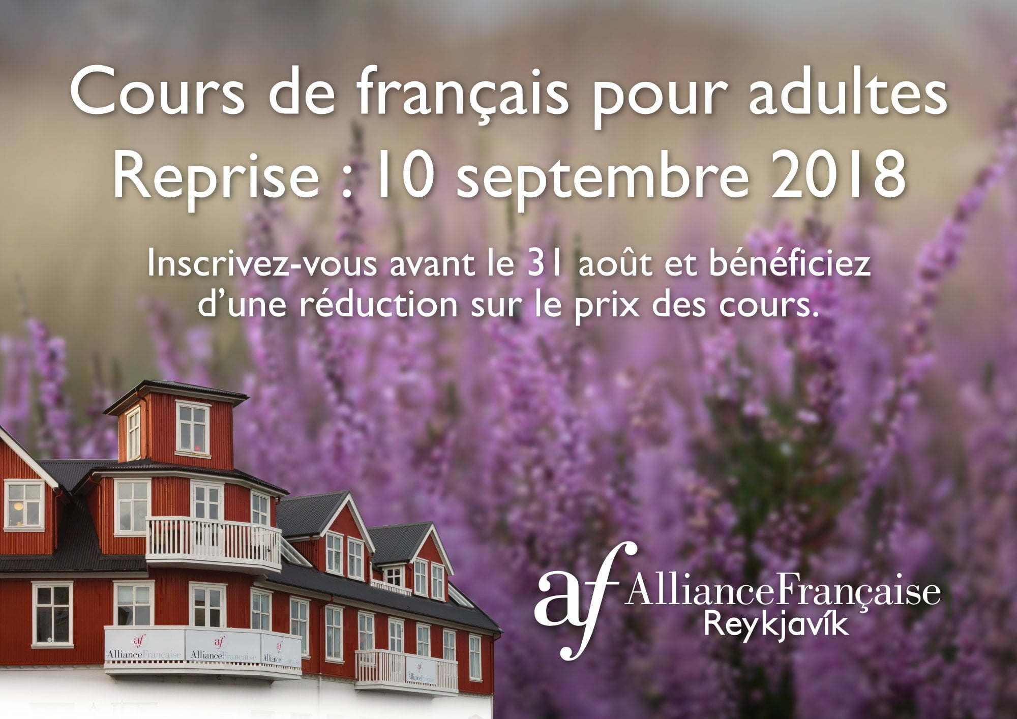 Pour plus d’informations et répondre à vos questions : 552-3870 ou alliance@af.is. Toute l’équipe de l’Alliance Française est très contente de pouvoir vous conseiller pour vos cours et de vous accueillir très bientôt dans notre établissement.