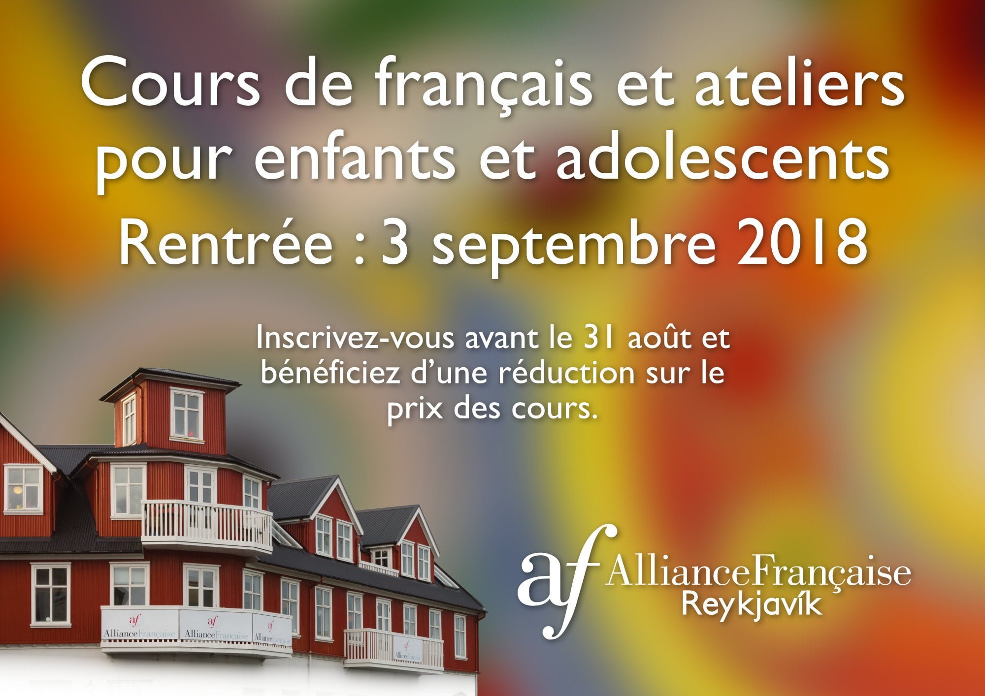 Pour plus d’informations et répondre à vos questions : 552-3870 ou alliance@af.is. Toute l’équipe de l’Alliance Française est très contente de pouvoir vous conseiller pour les cours de vos enfants et de vous accueillir très bientôt dans notre école.