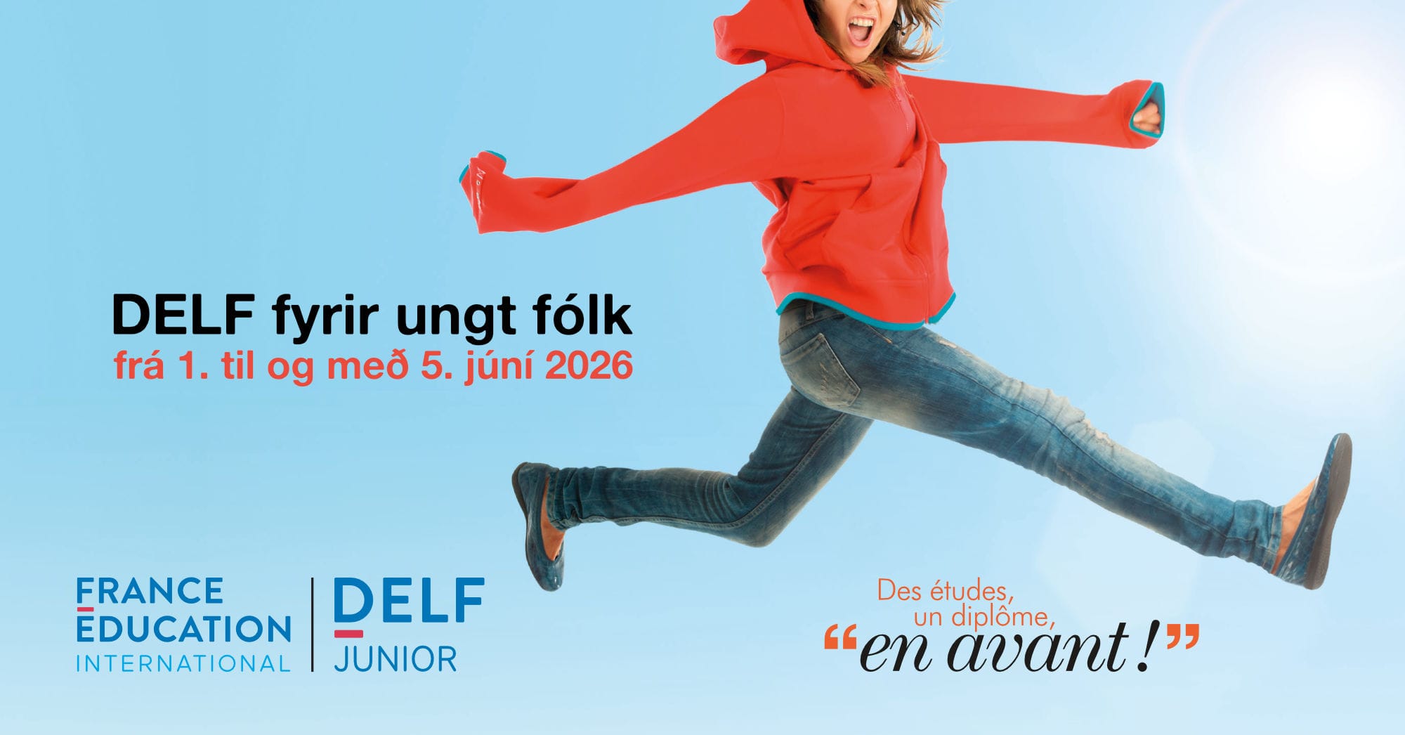 Alliance Française í Reykjavík býður upp á DELF próf Junior ungt fólk (12 til 17 ára).