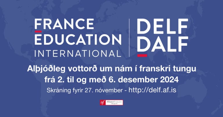 Alliance Française í Reykjavík býður upp á DELF-DALF prófið fyrir allan almenning frá 1. til og með 5. desember 2025. Skráning fyrir 23. nóvember í síðasta lagi. Vottorðin eru alþjóðleg, renna ekki út og eru viðurkennd af Menntamálaráðuneyti Frakklands. Prófin eru stöðluð og vottuð af France Éducation International. Prófdæmi DELF-DALF fyrir fullorðna hér. Ráðgjöf – alliance@af.is…