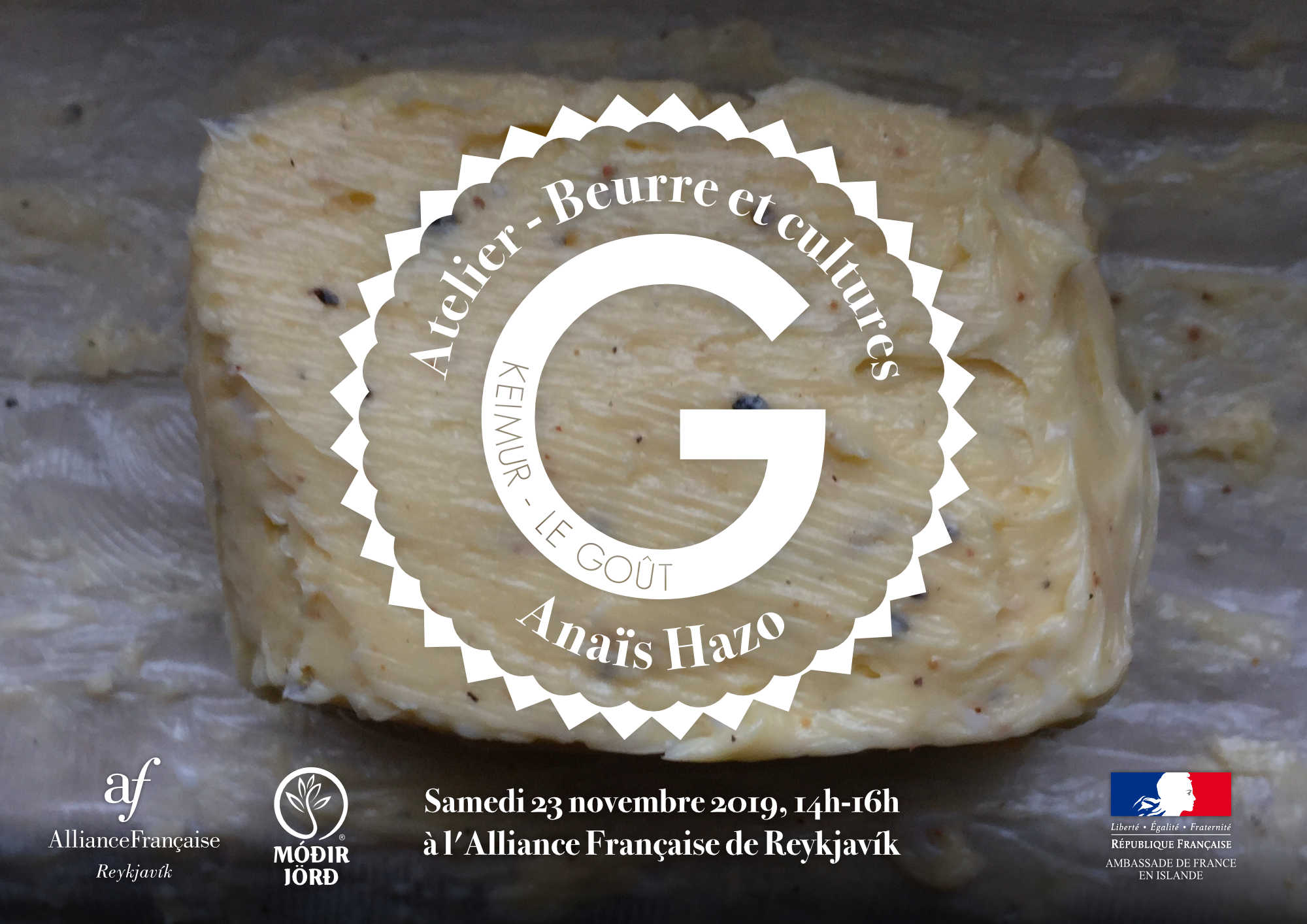Í tilefni af hátíðinni Keimur 2019 og með atbeina sendiráðs Frakklands á Íslandi býður Alliance Française í Reykjavík upp á vinnustofu um smjör og gerjun laugardaginn 23. nóvember, kl. 14-16 í viðurvist kokksins/listakonunnar Anaïs Hazo.